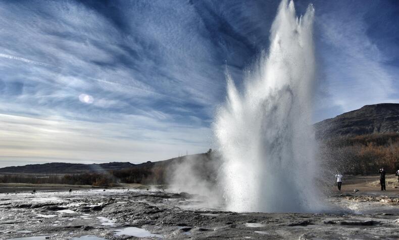 - ストロックル間欠泉は4~8分ごとに15~20メートルの高さまで噴出します。 —